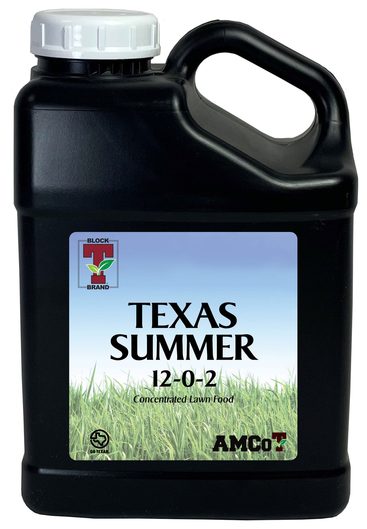 Texas Summer 12-0-2 is a liquid lawn specifically formulated for feeding through the leaves.  This allows the nutrients to be absorbed directly into the plant making them available for immediate use. It contains a blend of nitrogen and micronutrients along with humic acids, liquid seaweed and hydrolyzed proteins to improve soil health. Texas Summer works by supplying nutrients to the plant in combination with Carbon Combo that provides more effective nutrient uptake and Texas Soil Activator to energize soil microorganisms, improving soil health. The mixed product should be agitated prior to and during application.